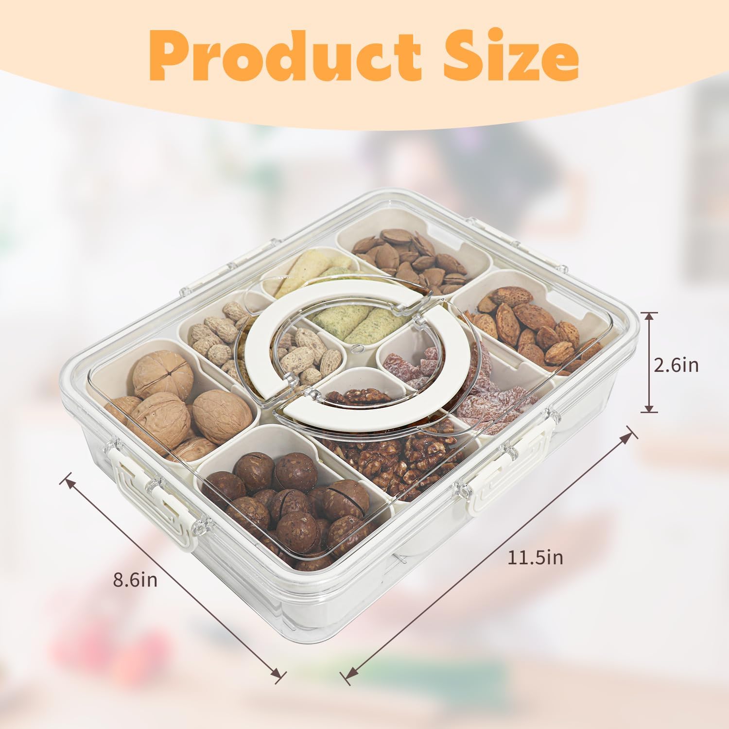 - Divided Serving Tray with Lid and Handle,8 Compartments Snacks Box,Snack Fruit Tray,Veggie Tray,Portable Platter for Candy Fruits Nuts Snack Party Entertaining Picnic(2 PCS)