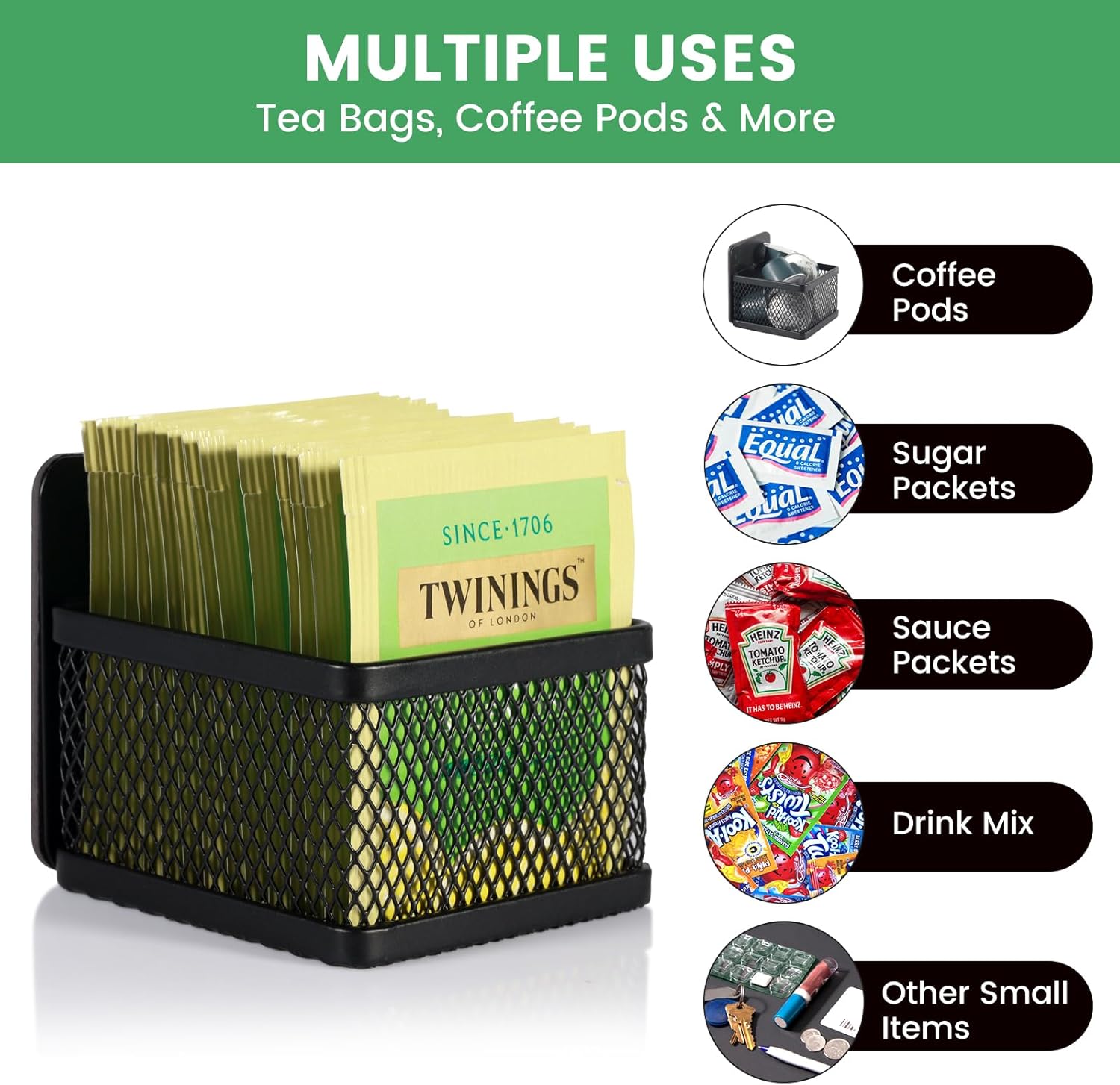 - Versatile Storage Solution: The tea storage organizer is perfect for organizing tea bags on kitchen countertops, office coffee bars, and tea stations. It also accommodates various other small items, ensuring clutter-free spaces.