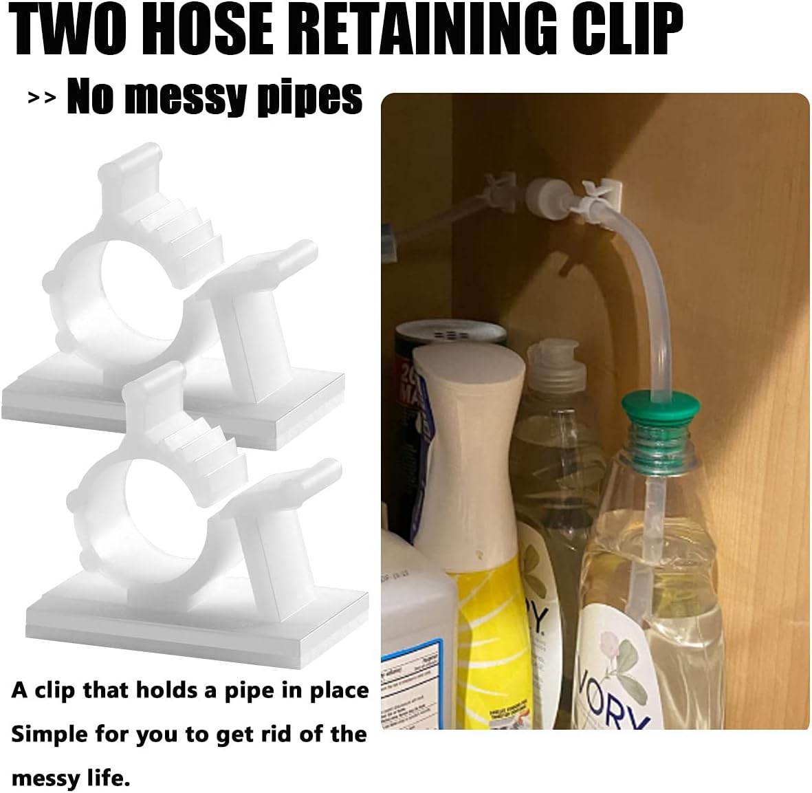 - 2 PUNCH-FREE PASTE HOSE HOLDER INCLUDED - Don't worry about the 47" under sink dish soap dispenser tube is too long, just use the sticking hook to fix the hose on the wall (the wall needs to be dry and smooth), which is very simple for you to get rid of the messy life.
