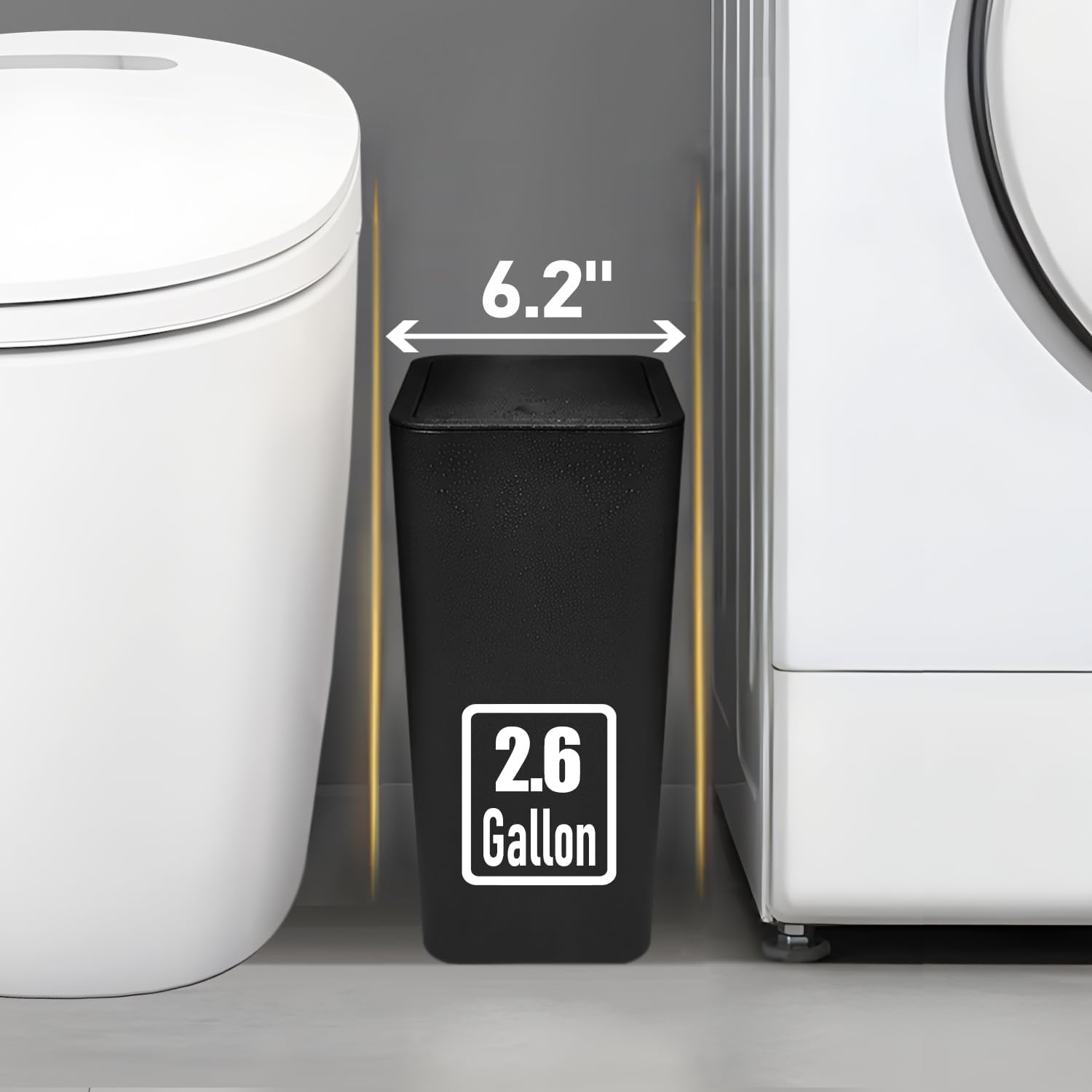 TIPGO Bathroom Trash Can with Lid, 10 Liter/ 2.6 Gallon Slim Garbage Can, Small Trash Bin Waste Basket with Pop-Up Lid for Kitchen, Bedroom, Living Room, Office (Black)