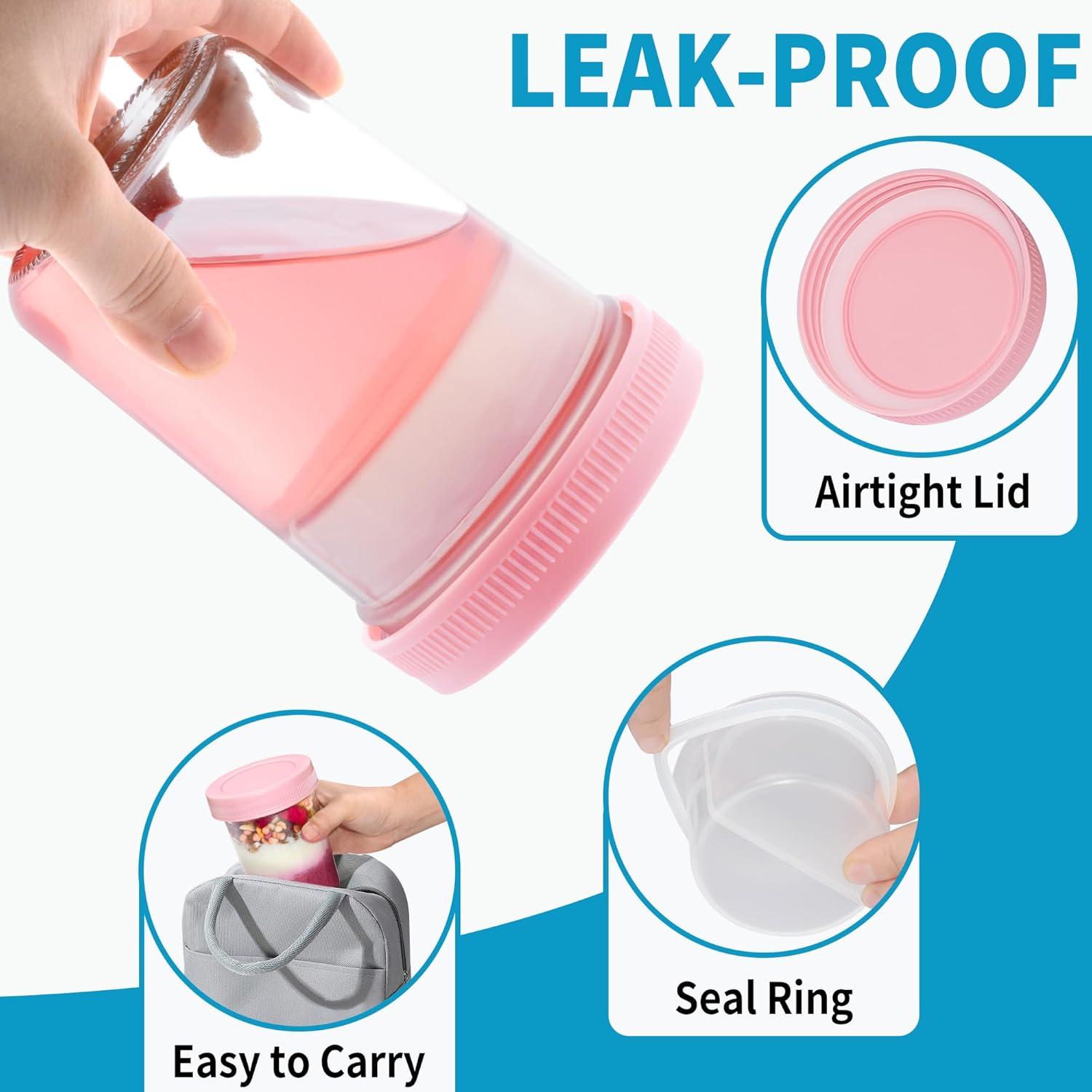 - Airtight & Leak-Proof: Featuring dual sealing rings, these glass jars provide airtight seals and leak-proof performance. Perfect for taking your overnight oats to work, camping, or on the go.