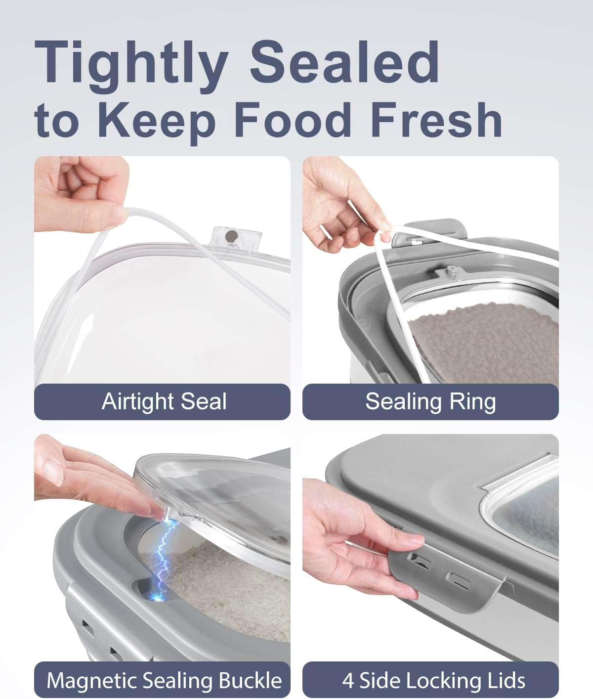 - Superior Sealing for Freshness: Our rice storage container is designed with a double airtight seal and 4 side locking lids, ensures your pet's food stays fresh longer, free from moisture