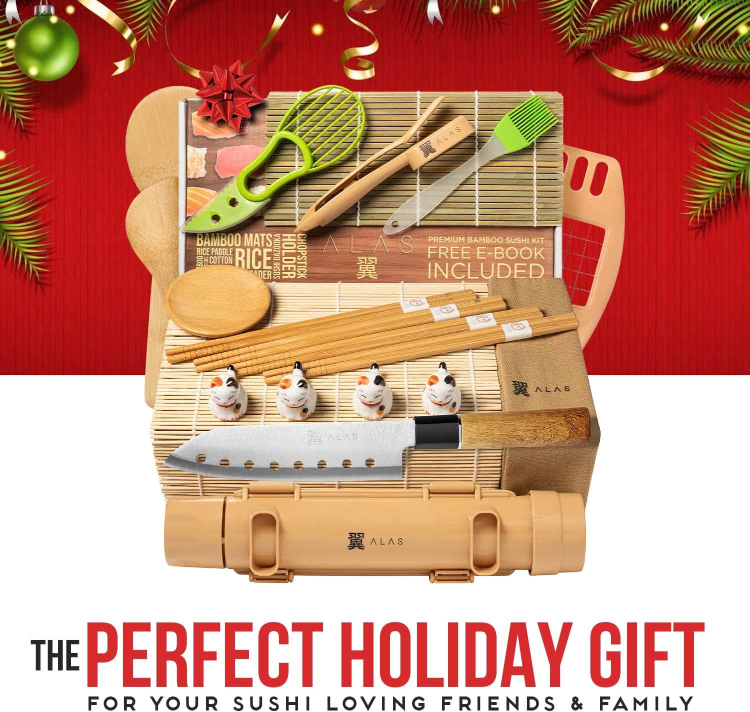 Alas Complete 20 Piece Sushi Making Set - Kit for Beginners & Pros with Knife, 2 Mats, Rice Bazooka and Dipping Plate