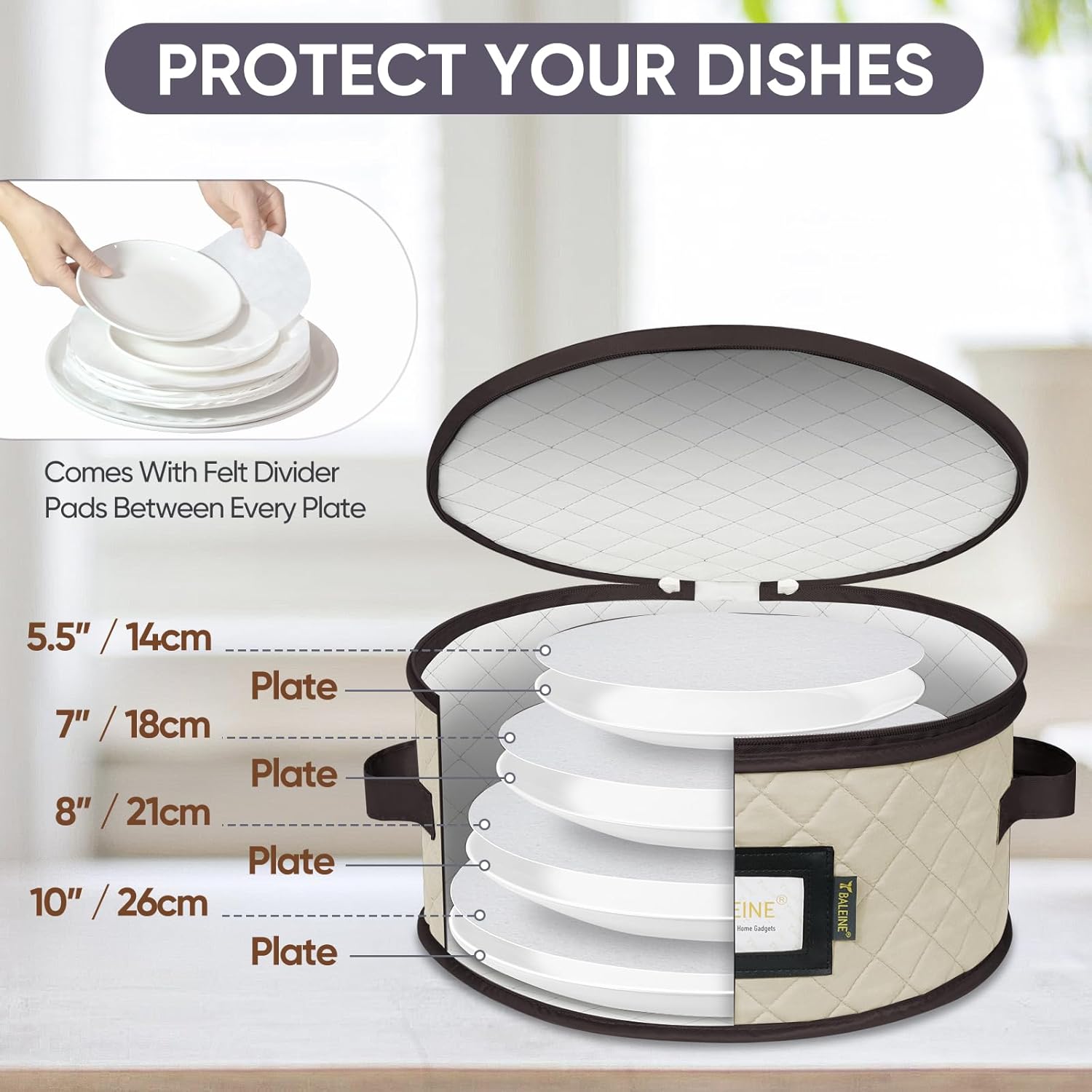 - Sturdy Protection: This china storage container offers excellent protection for your dinnerware, keeping plates, cups, and glassware safe during transport; The soft, padded lining prevents scratches and breakages, providing peace of mind during storage or moving
