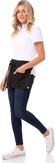 - Easy to Wear - 12-inch H by 23-inch W aprons for men and women allow easy movement. This apron with pockets sits above the knees