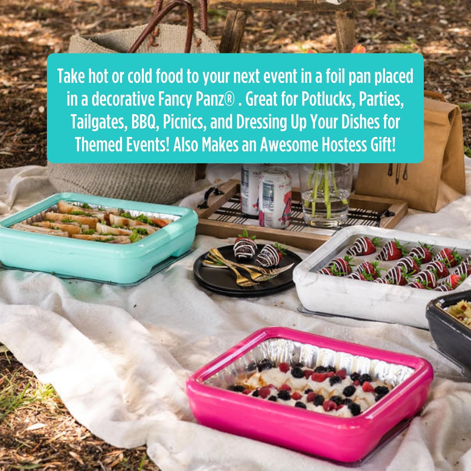 - ELEVATE EVERY GATHERING with Fancy Panz! Slip your foil pan into a Fancy Panz and instantly turn casual dishes into party-ready serving trays you'll be proud to set out