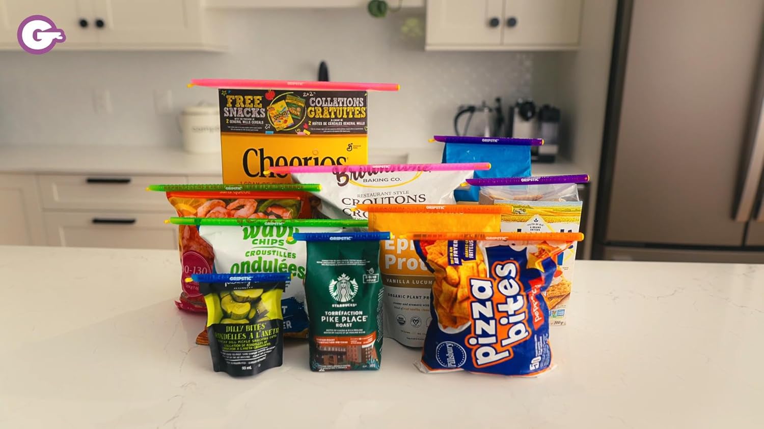 - EASY TO USE : Fold the bag over 1x and slide the GRIPSTIC across the bag. Color-coded in 5 sizes to seal everything from kids snacks to family size frozen vegetables. Freezer safe and dishwasher safe.