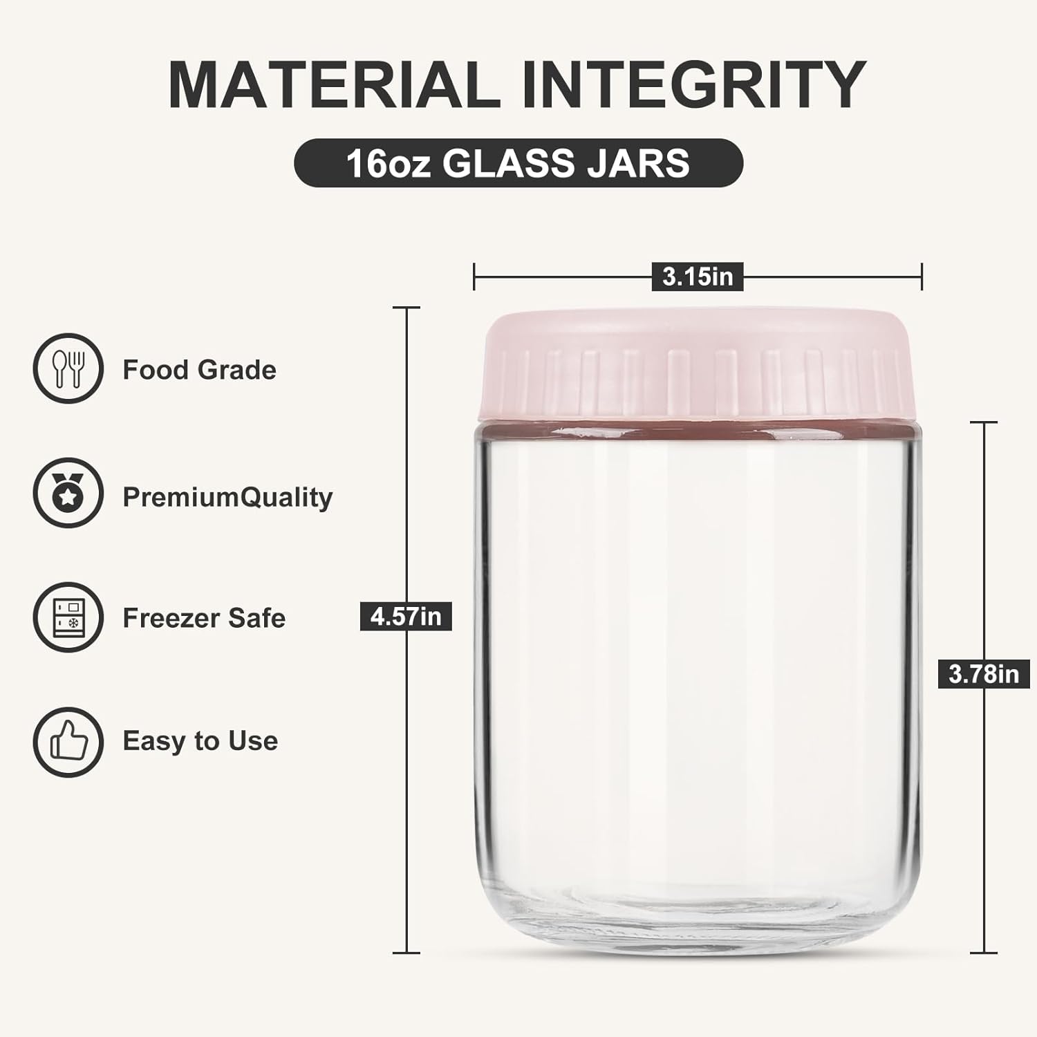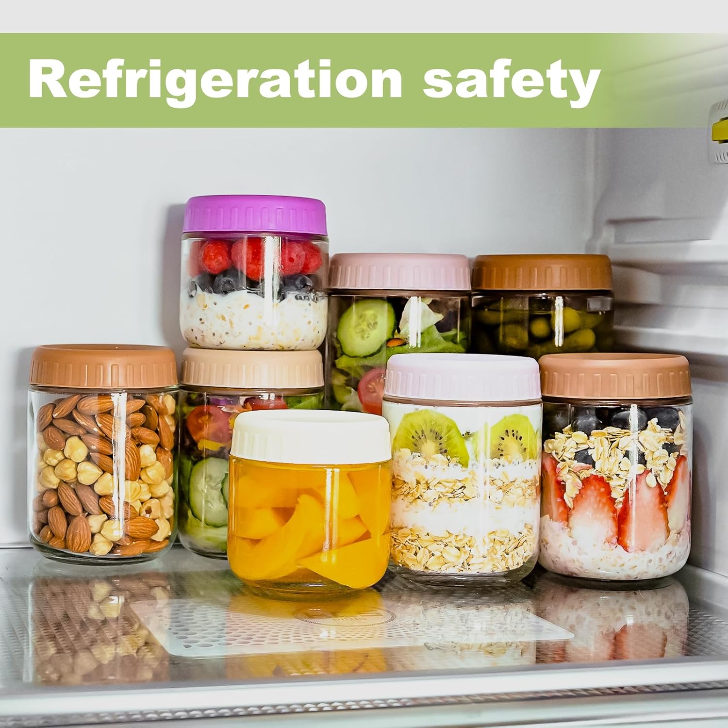 Overnight Oats Containers with Lids, 16oz Glass Jars with Lids 4 pcs, Wide Mouth Mason jars for Salad, Yogurt, Snacks, Meal Prep