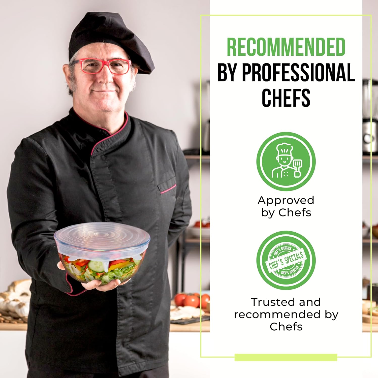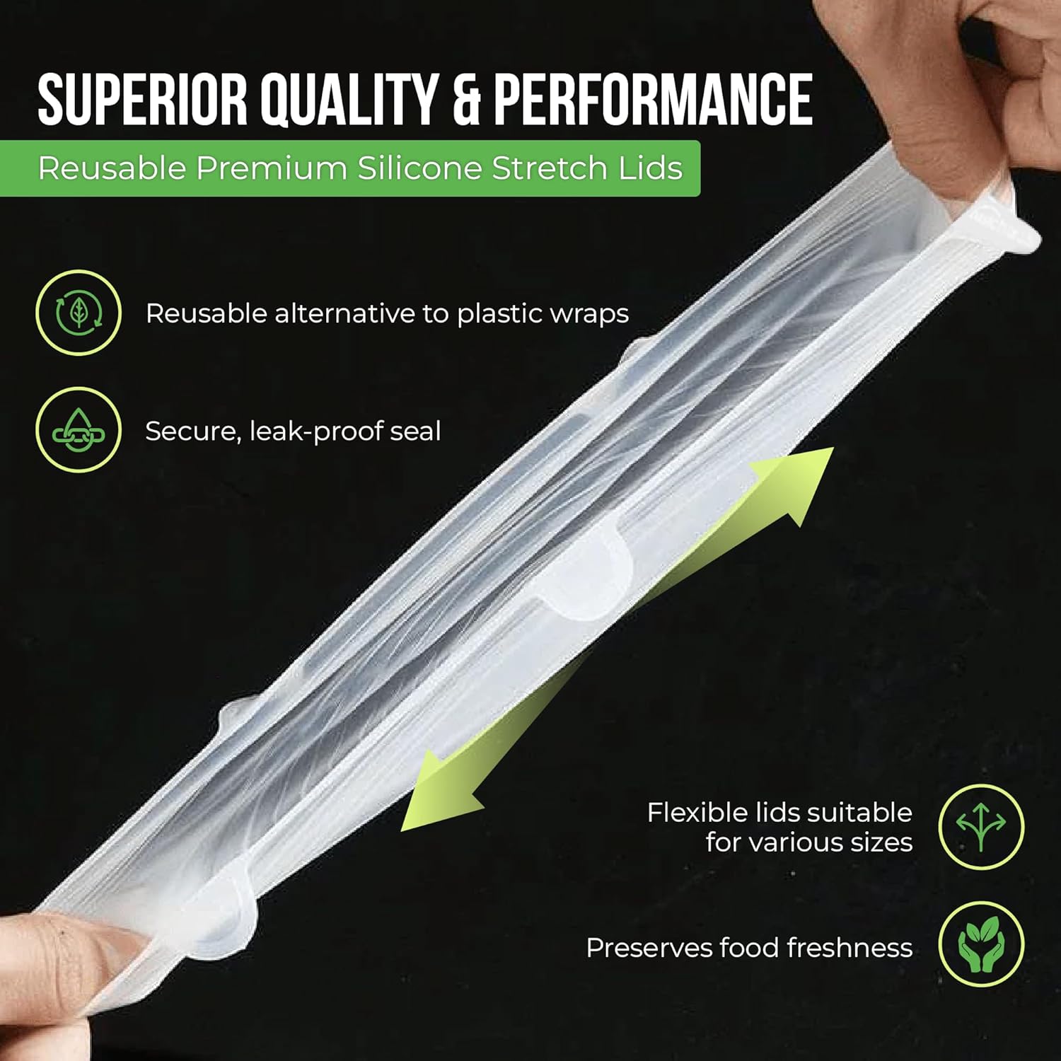 - Space-Efficient Freshness: Our stackable silicone lids keep food fresh, save cabinet space, and help you organize your kitchen with ease. Handwash or dishwasher-safe silicone wraps for food.