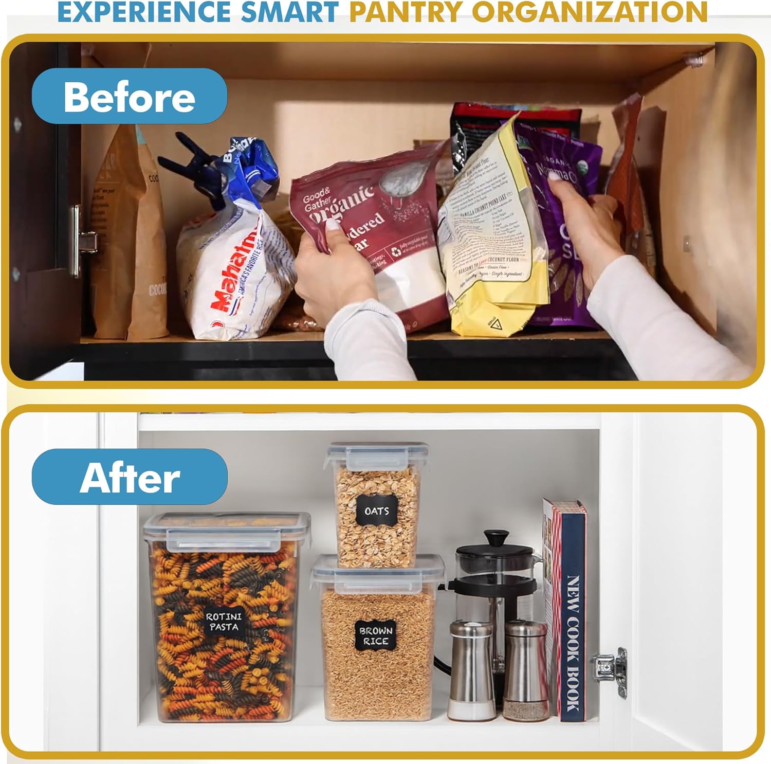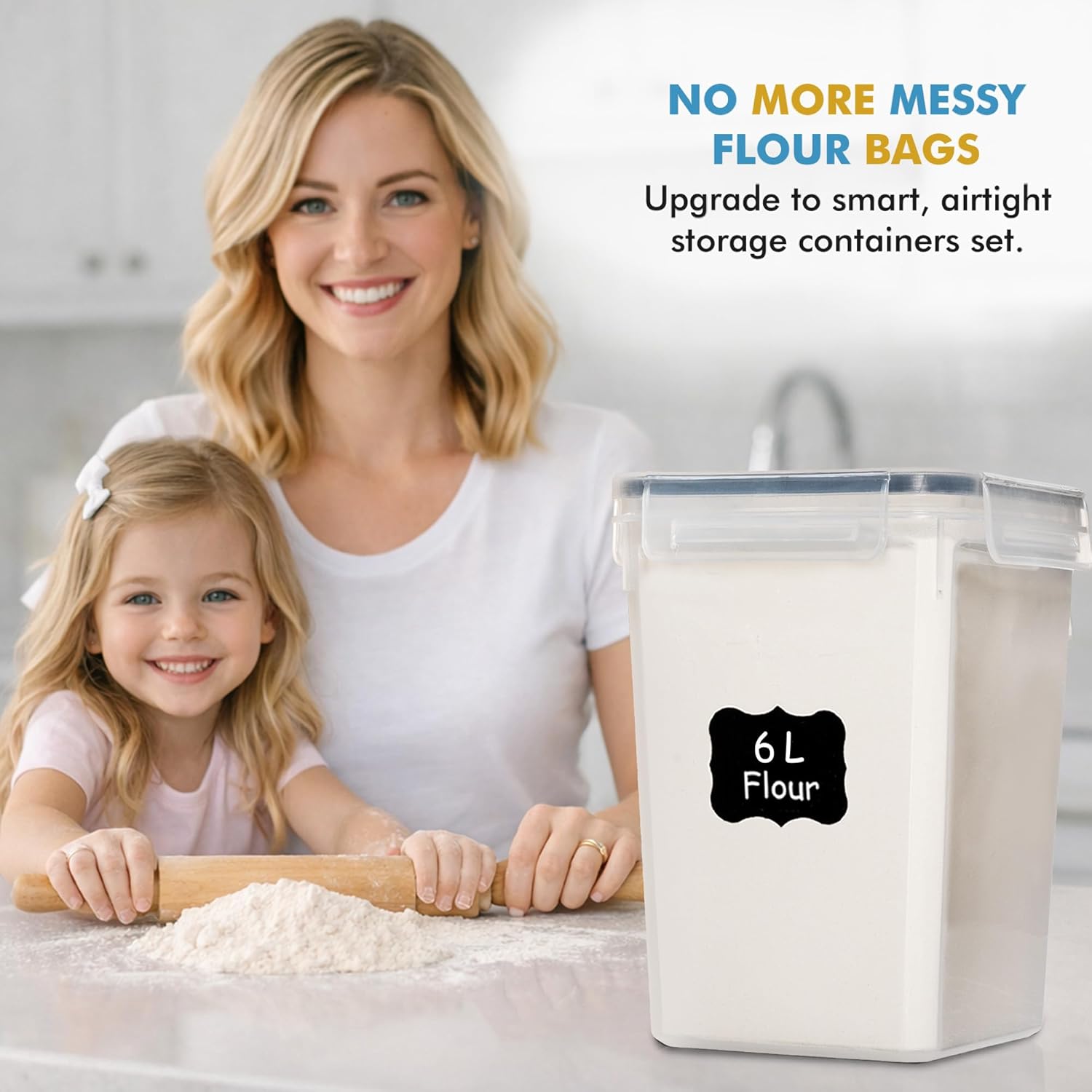 Shazo Flour Sugar Storage Containers Set of 3 (6L, 2.9L, 1.1L) Large Airtight Food Storage Containers with Lids, BPA-Free Plastic Container for Kitchen & Pantry Organizers, Cereal, Rice & Pasta