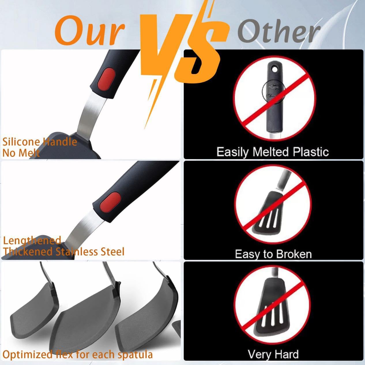 Silicone Spatula Turner, 5-Pack Spatulas Silicone Set for Nonstick Cookware, 600°F Heat Resistant Kitchen Cooking Utensils Set for Egg, Pancake Dishwasher Safe