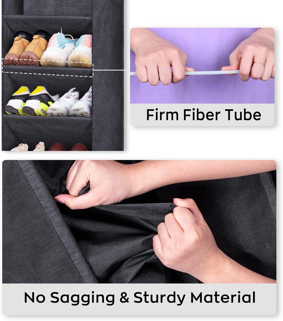 - 【Premium Oxford & Great Support】: The hanging shoe rack outside covered with premium quality oxford fabric, which have great tear resistance and with long life-span, adopted 5mm thick sturdy tubes to avoid deformation and squeezing to get strong bearing;