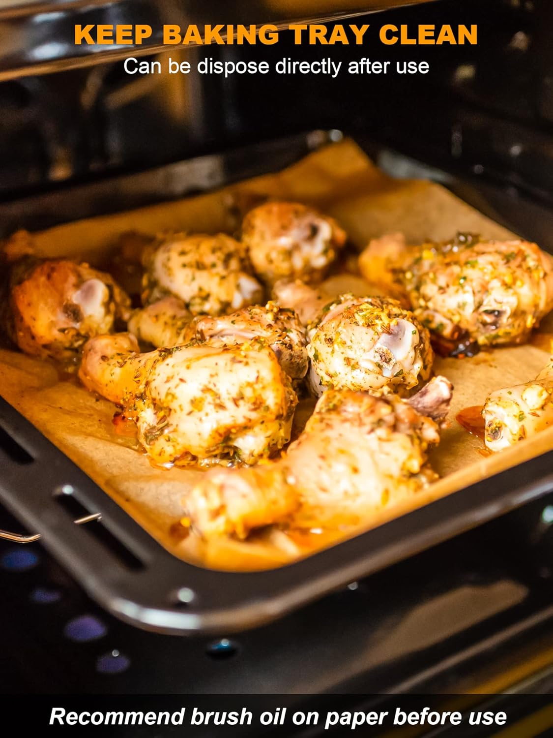 Non-Stick Parchment Sheets: Cookies can easily slide off the baking tray and the bread won’t stick to it. Notice: Please do not exceed the maximum heat resistance: 450°F (232°C).