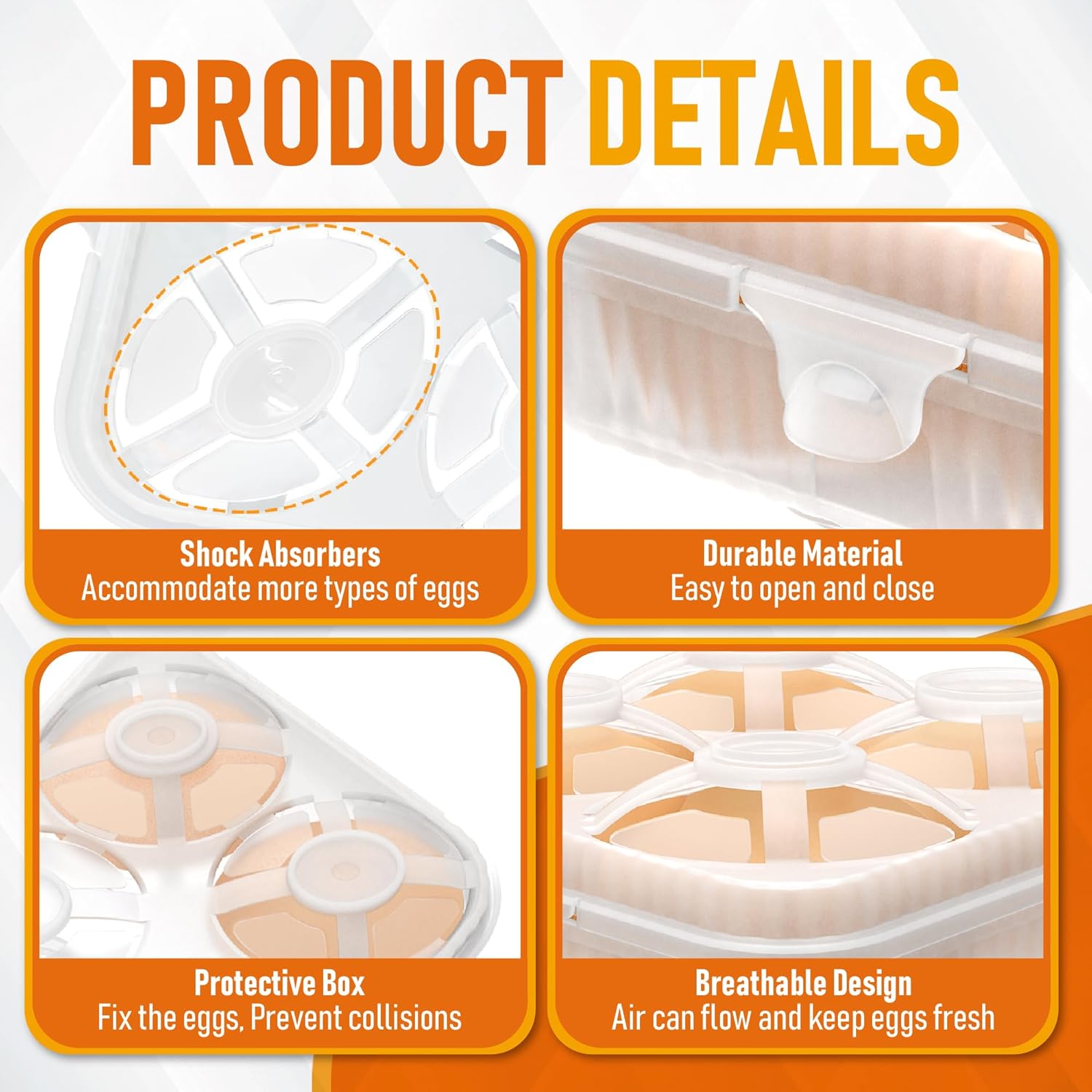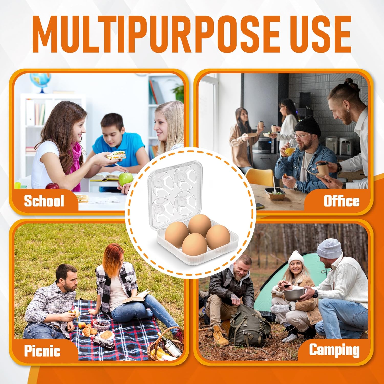 ZPU Egg Holder Camping, 1Pcs 4 Grid Egg Container, Plastic Egg Carrier for Camping Picnic Travel Outdoor Refrigerator Kitchen, Clear White